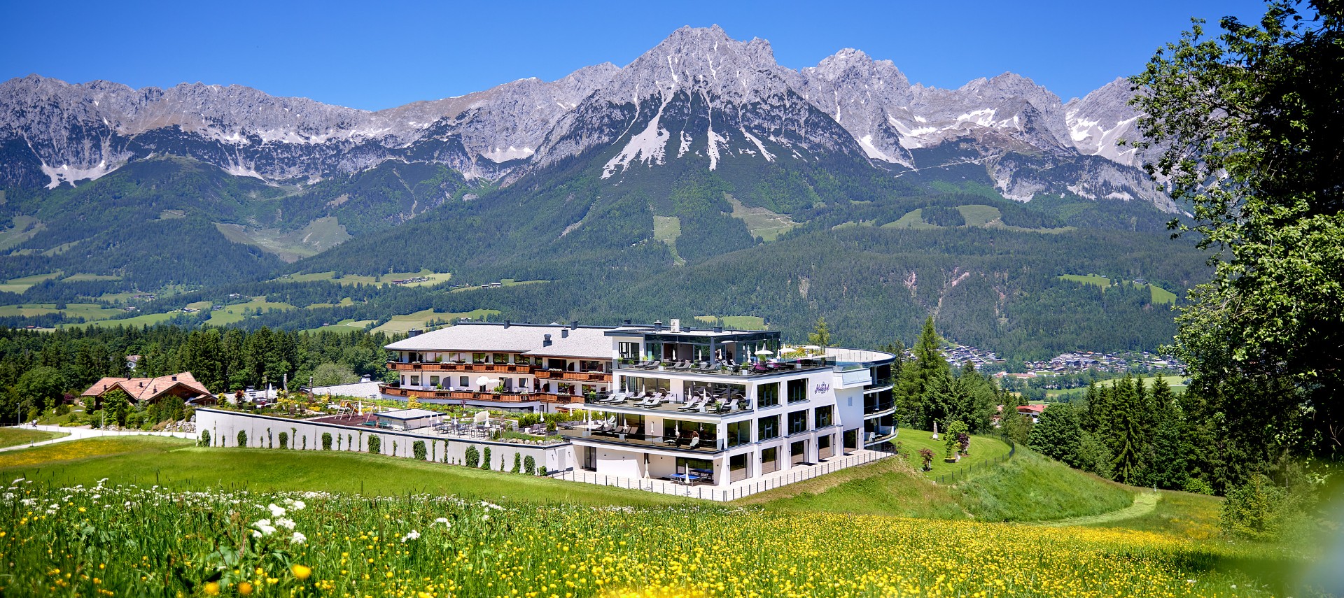 Die Sonne streichelt die Nase, das wohltemperierte Wasser des Pools umschmeichelt den Körper, der Blick schweift in die Ferne über die schroffen Felsen des Wilden Kaisers – das 5-Sterne-Superior-Hotel Kaiserhof, hoch über den Dächern Ellmaus, hat wirklich den Logenplatz auf einem Sonnenplateau. Wo, wenn nicht hier, ist Urlaub unvergesslich? Ob Groß, ob Klein – jeder fühlt sich bei Gastgeberfamilie Lampert wie zuhause: Luxus und Geborgenheit in all ihren Facetten.