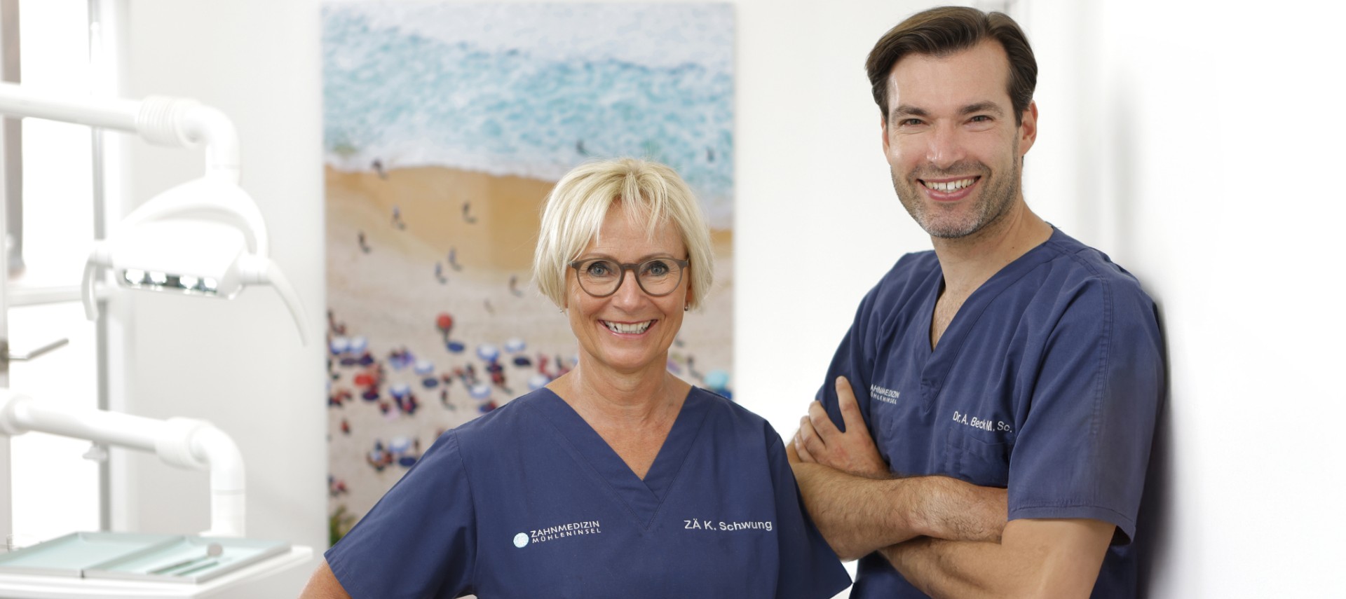Dr. Becks Schwerpunkte liegen auf den Bereichen Parodontologie und Implantologie. Seine Kollegin Kirsten Vesterø Schwung ist spezialisiert auf Implantologie, unsichtbare Zahnkorrekturen mit Aligner und ästhetischen, vollkeramischen Zahnersatz. Die dritte Ärztin im Team, Dr. Alexandra Sträter, betreut schwerpunktmäßig die konservierende Zahnheilkunde. Durch unsere Spezialisierungen können wir auch umfangreichste Behandlungsmaßnahmen aus einer Hand durchführen. All das auf höchstem Niveau und in entspannter Atmosphäre.